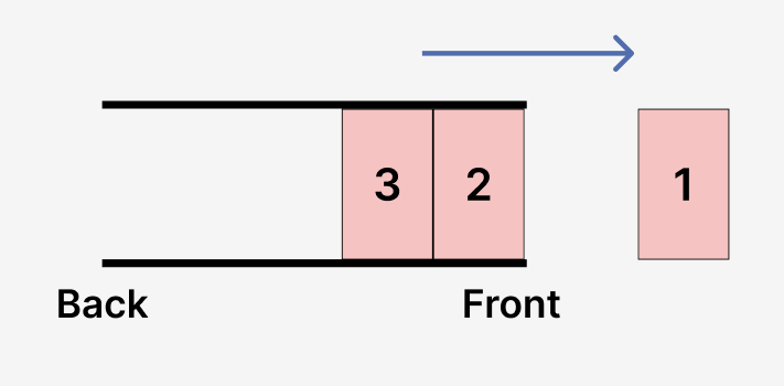 1 → 2 → 3 순서로 들어왔기 때문에 먼저 들어온 1부터 나간다.