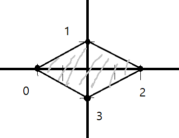 이 부분은 Mesh 클래스로 객체를 생성하고, 정점(verticles)과 삼각형(triangles) 모양을 정의해주고 있다. 좌표상에서 각각 (-2, 0) (0, 1) (2, 0) (0, -1) 부분에 정점을 만들고 이 정점을 1->2->3 (삼각형 1개) 0->1->3 (삼각형 나머지) 이렇게 시계방향으로 면을 만들어주겠다는 말이다.